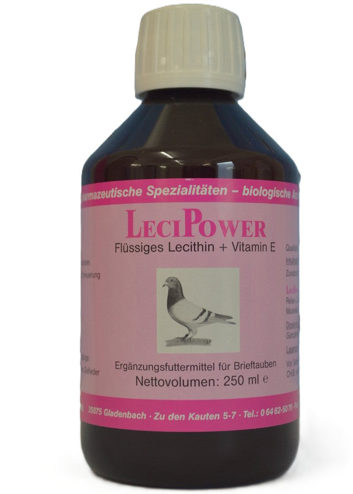 Für Leistungsfähigkeit, starke Nerven und ein gepflegtes Gefieder braucht es eine gezielte Ergänzung. LeciPower ist ein Ergänzungsfuttermittel für Brieftauben mit hochwertigem, natürlichem, pflanzlichem Lecithin plus hochkonzentriertem Vitamin E.